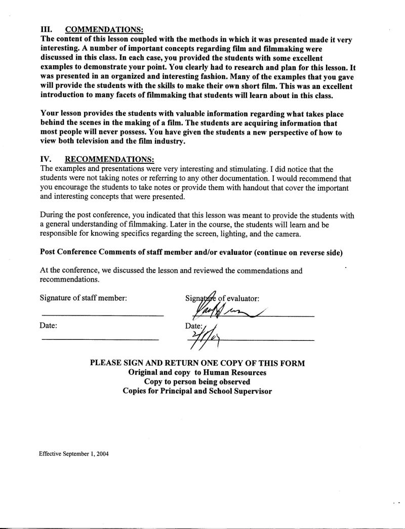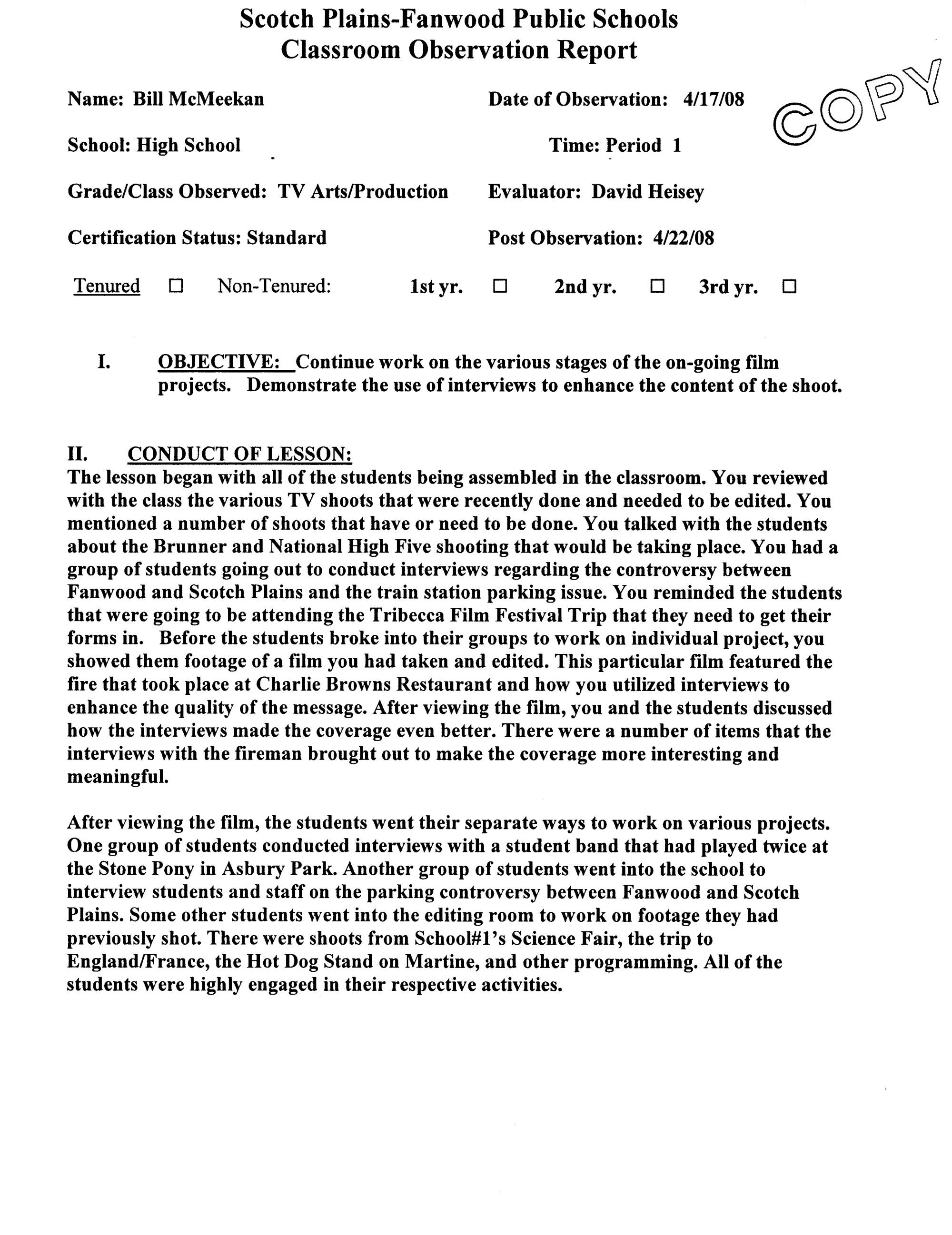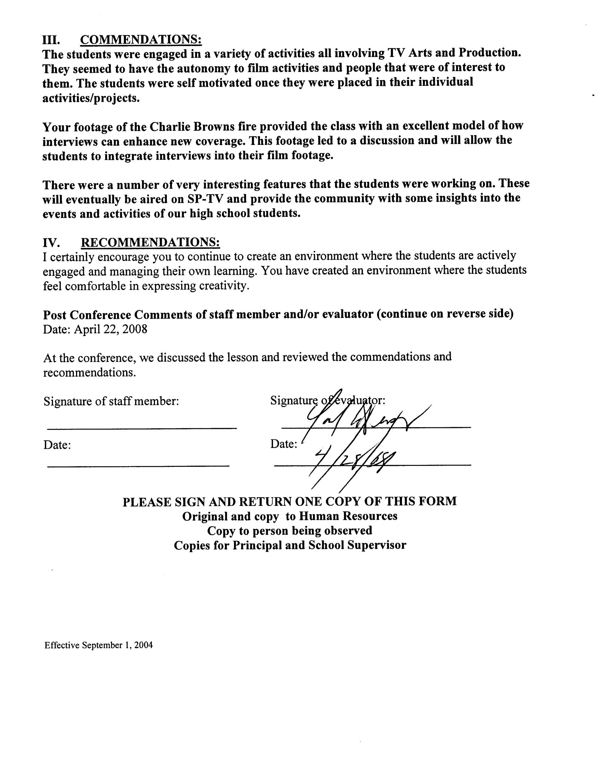 SPFHS Observations / Evaluations