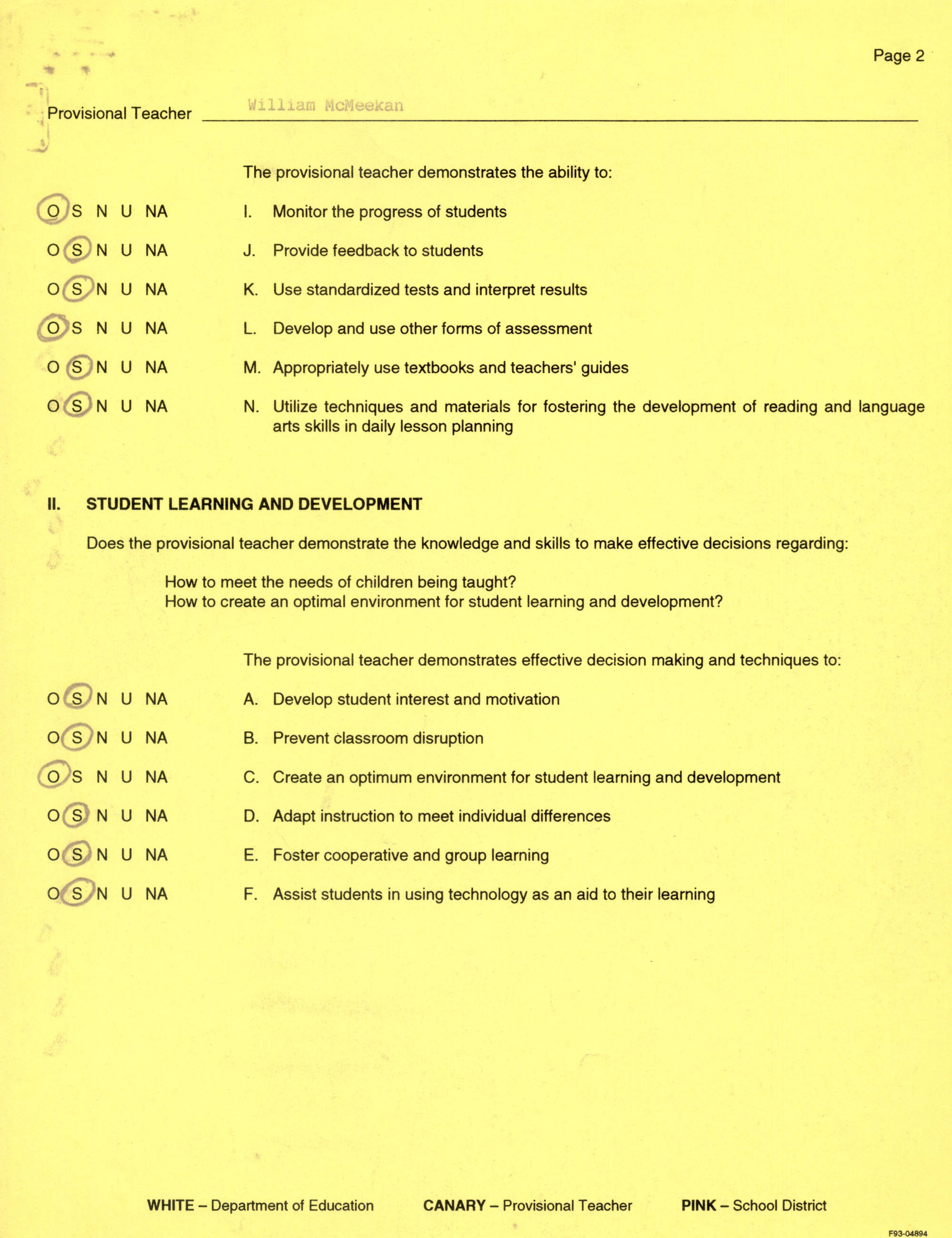 UHS Observations / Evaluations