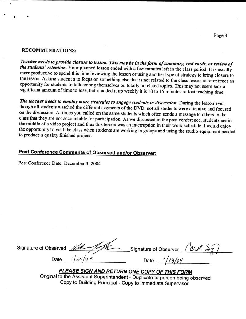 SPFHS Observations / Evaluations
